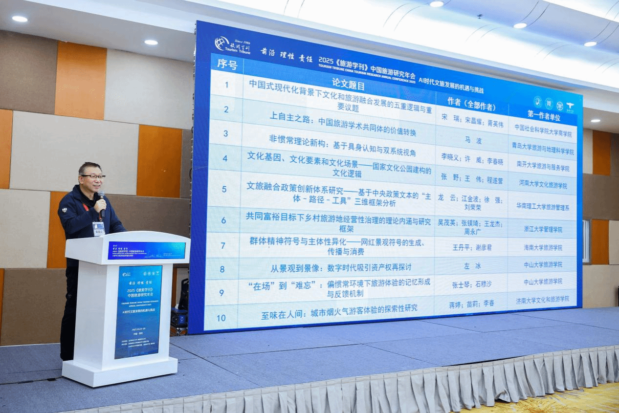 、北京联合大学旅游学院、《旅游学刊》编辑部承办。会议以“AI时代文旅发展的机遇与挑战”主题,聚焦AI赋能下的旅游研究范式转型、文旅产业变革、消费行为演化、教育体系重构等议题,系统呈现了当前中国旅游研究的前沿动态与未来趋势,为构建具有中国特色的旅游学科体系和推动文旅高质量发展提供了重要智力支持。
