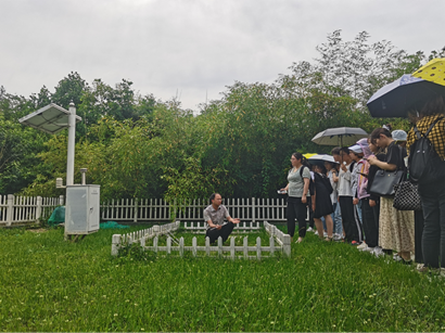 实验中心气象园,特邀气象专业郑伟老师为同学们讲解了气象园中温湿度传感器、翻斗式雨量传感器、风速传感器、风向传感器等多种器材的原理及使用方法。通过此次活动,同学们对气象园的整体布局及其中各个仪器的原理和使用有了深入了解。