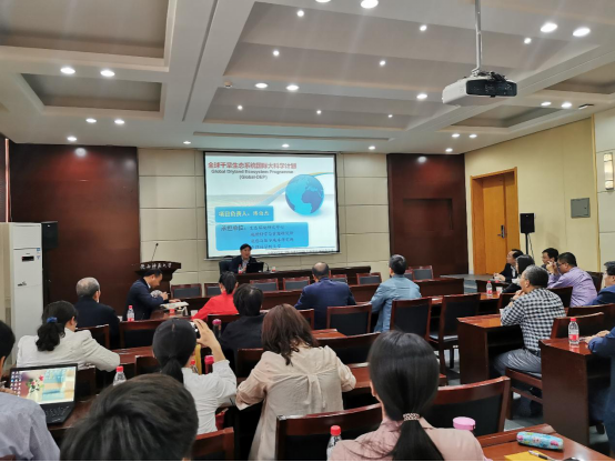 会上,傅伯杰院士作主旨报告,介绍了以傅院士为首席科学家主持的“全球干旱生态系统国际大科学计划(Global-DEP)”项目研究内容与成果。他指出:《全球干旱生态系统科学计划》包括以下核心内容,即全球旱地社会-生态系统概念框架、科学计划的主题研究领域和组织架构。其中,主题研究领域分为干旱区动态变化与驱动机制、干旱生态系统结构和功能变化、干旱生态系统服务和人类福祉、生态系统管理和可持续生计四个部分。该计划设立了亚洲、地中海、非洲、北美、澳大利亚等典型研究区,旨在将全球从事干旱区研究的科学家联合起来,为全球干旱生态系统研究和管理提供方法论和路线图。项目已在“全球土地计划”的支持下设立了特别工作组,并争取纳入到“一带一路”国际科学组织联盟(ANSO)首批科学研究计划,引领全球干旱生态系统监测与研究。