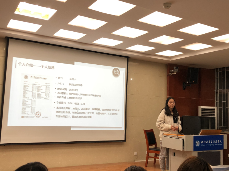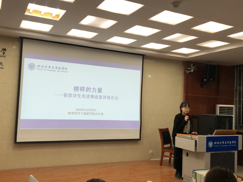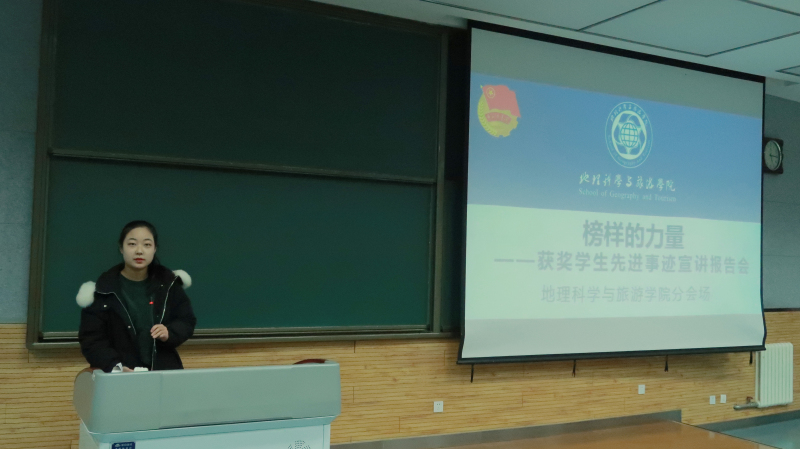 2019级迟远以“最美的风景在路上”为题,和同学们分享了自己对于三个问题的理解:做老师的感觉、教育的意义、我该怎么去做。根据自身的学习经验,讲述了自己对学习的认识和理解,她认为学习是永无止境的,特别是在大学期间必须做好时间管理,合理规划,扎实用功,并总结引出“专业引导方向,信仰点亮青春”的成长感悟,并以“地理人,地理魂,地理人都是追梦人”为结尾,与大家共勉。