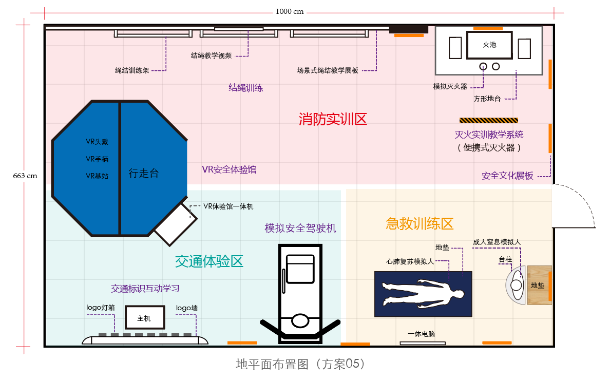 实训馆主要设施及项目包括醉酒行走体验项目、结绳训练、VR安全体验项目、交通标识互动学习项目、安全模拟驾驶项目、灭火实训教学系统和海姆立克训练七大板块。整个过程寓教于乐,通过完善的信息化基础设施和专业的教学设备,“场景式+情景式+体验式”的教育方式,使之成为避灾避险培训和体验的一站式场所,以期全面提升小说网