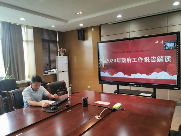 6月19日上午,教工行政党支部开设专题党课,由组织委员欧启均为全体党员解读2020年政府工作报告,帮助党员同志深刻领会全国“两会”精神实质。此次党课采取“线上线下”联动的方式进行,行政支部全体党员参加。