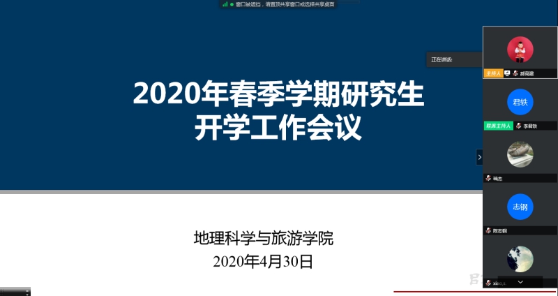 党委副书记郝高建传达了学校2020年春季学期学生开学工作会议精神,对研究生开学工作安排做了说明,明确了学生返校时间及返校要求,从学生返校原则、返校时间、返校须知、基本流程、温馨提示、应急处置及注意事项等7个方面做了说明。