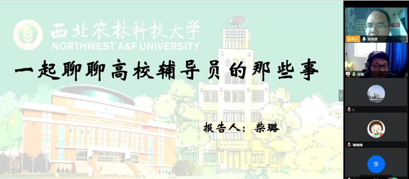 2020届毕业生提升竞业能力,4月26日下午,学院“校友归来话成长”第五场高校辅导员和管理岗位经验交流会举行。本次邀请了现任西北农林科技大学辅导员柴璐、2019届环境工程硕士生、西北大学辅导员孟庆彬、2019届人文地理学硕士生、西北大学人力资源部顾恺、2019届国土资源学硕士生、小说网