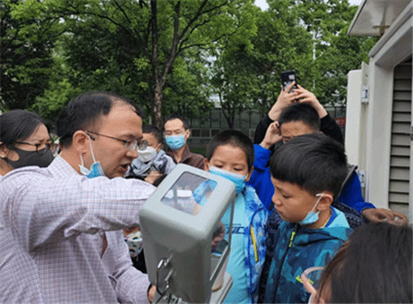 在参观过程中,郑伟老师给小朋友介绍了气象园的各组成部分,详细讲解了各种气象记录仪表收集信息、形成数据的过程,对小朋友们提出的各种疑问进行了解答。庞奖励老师从“岩石会说话吗”讲起,为小朋友们生动有趣的讲解了水晶、砂金、珊瑚化石、鹦鹉螺化石等矿物标本,从矿物岩石是怎么样被掩埋到为什么会被发现等方面进行了讲解。欧启均老师通3D虚拟系统进行虚拟旅游科普,小朋友们观看了8分钟的3D效果模拟动画。实验中心老师李敏睿、马阁、王瑞媛组织并共同参与了活动。