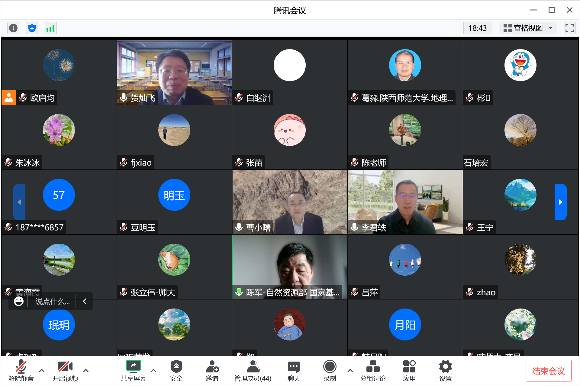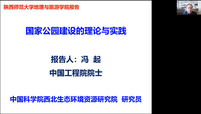 杰出校友冯起研究员;中国科学院院士、长安大学彭建兵教授;中国工程院院士、自然资源部国家基础地理信息中心陈军教授;国家杰出青年基金获得者、北京大学贺灿飞教授;北京师范大学宋长青教授;广州大学地理科学学院朱竑教授;国家自然科学基金委地球科学部熊巨华研究员等8位专家分别围绕面向可持续发展的地理学、国家公园建设的理论与实践、生态秦岭研究构想、实景三维中国建设的方向与任务、 新时期中国区域发展研究、复杂地理系统认识、西方再野化研究启示与中国实践、地理科学的基金申请资助简介等主题,做了精彩纷呈的学术报告。论坛线上线下交流活跃,学术气氛浓厚。