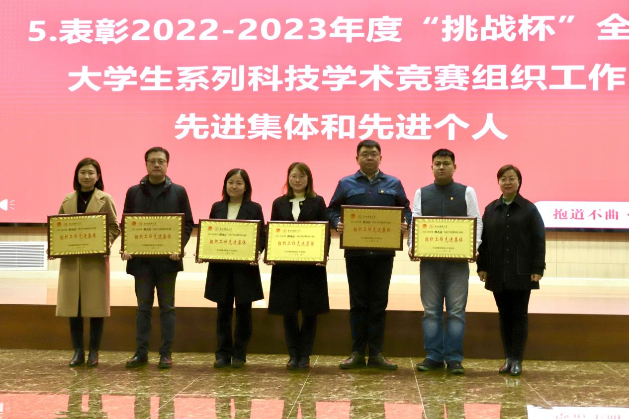 王艳华副教授、2020级本科生张皓然分别作为指导教师代表和获奖团队成员代表作交流发言,2021级本科生李楠茜代表防“微”杜渐团队进行现场路演展示。学院荣获2022-2023年度竞赛组织工作先进集体,学院团委书记张思豆荣获竞赛组织工作先进个人。