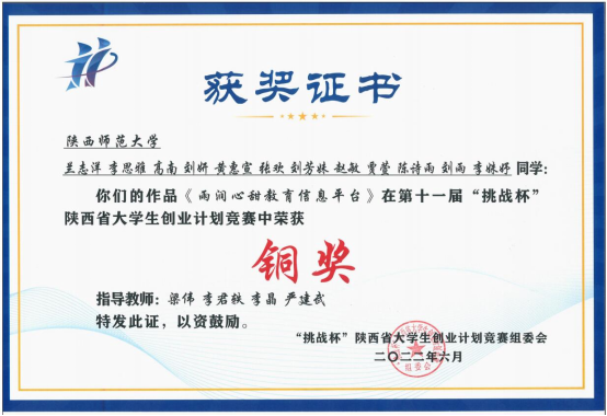 启动“挑战杯”大学生创业计划竞赛校级赛事以来,学院共选送21件作品报名参赛,参与学生超过200人。经过学校初审选拔、复赛、决赛评审,《雨润心甜教育信息平台》项目荣获校级银奖,《更喜岷山—游戏赋能IP打造文旅消费新场景》荣获校级铜奖。其中《雨润心甜教育信息平台》项目代表学校参加省赛并荣获省级铜奖。小说网