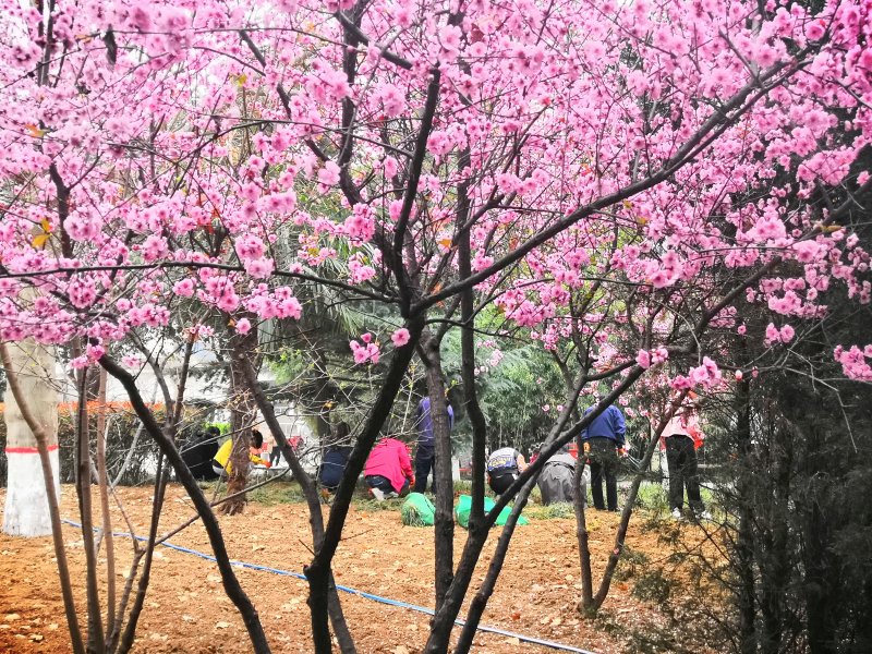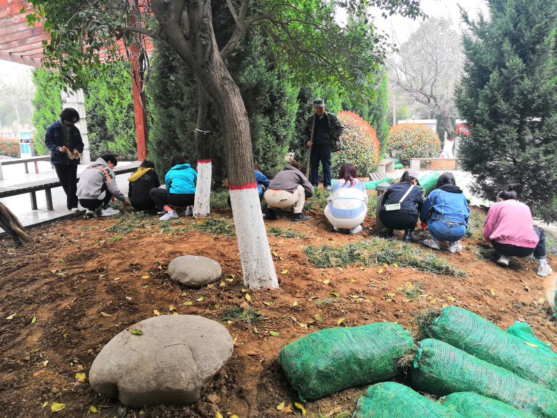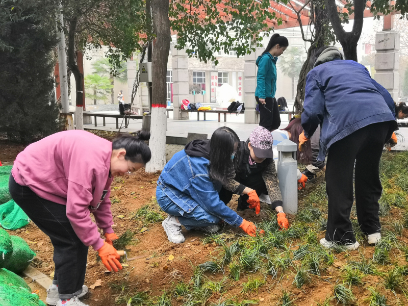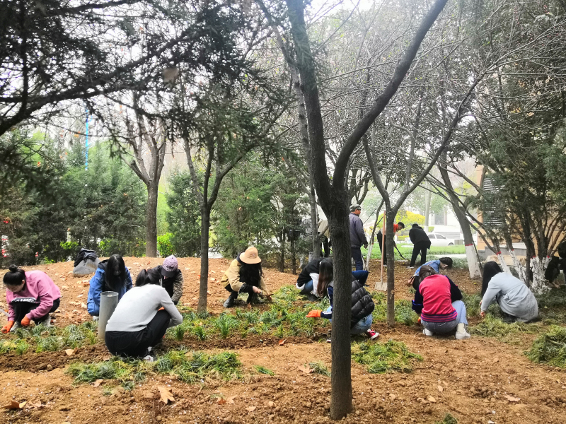 组织部分本科生、研究生同学积极参与“种草补绿 美化校园”校园绿化活动。