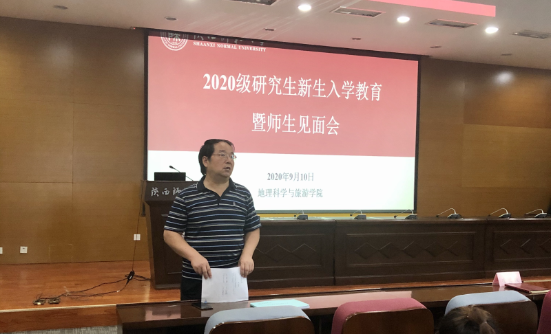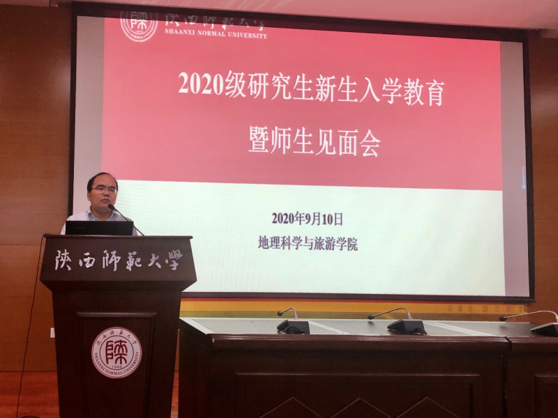 2020级研究生新生入学教育暨师生见面会在长安校区文汇楼C区211报告厅举行。学院党委书记李晋东、副院长李君轶、地理科学系主任岳大鹏教授、地理信息科学系主任白建军教授、环境科学与工程系主任王利军副教授、旅游管理系副主任张春晖老师,学院办公室主任王钰、研究生教学秘书李紫颖、科研秘书李梓涵、辅导员陈林出席了本次大会,大会由学院党委副书记郝高建主持。