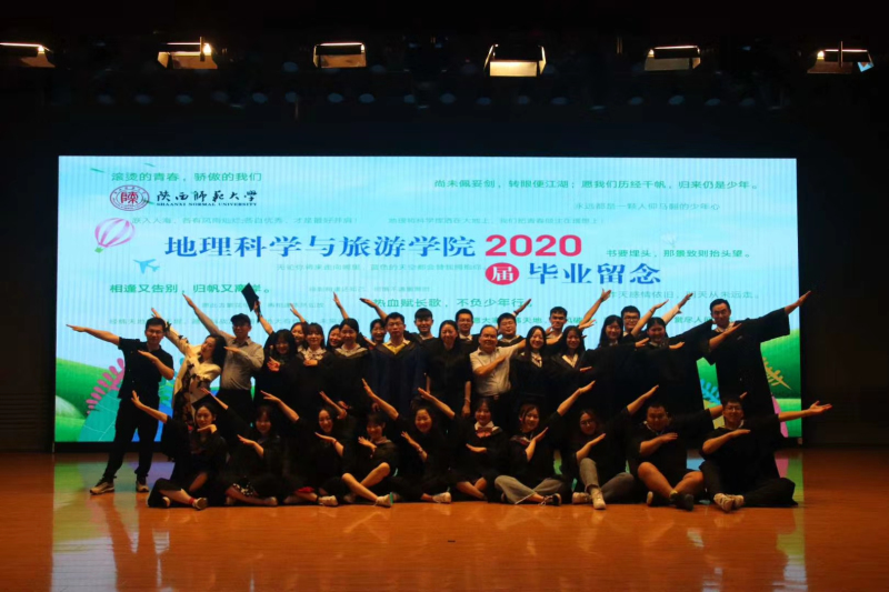2020届毕业生毕业典礼暨学位授予仪式在长安校区新勇活动中心二楼学生剧场隆重举行,为圆满完成学业,即将奔赴新征程的10名博士生、175名研究生和245名本科生饯行。学院院长周正朝,副院长李君轶、李晶、郑海博,环境科学系副主任邵天杰,地理科学系副主任王宁、旅游管理系副主任张春晖在主席台就坐,团委书记王蓓蓓,学院办公室主任王钰、学院办公室张凯、李紫颖、李梓涵,辅导员陈林、张思豆、刘舒天、白克阿力等老师参加本次典礼。毕业典礼由党委副书记郝高建主持。