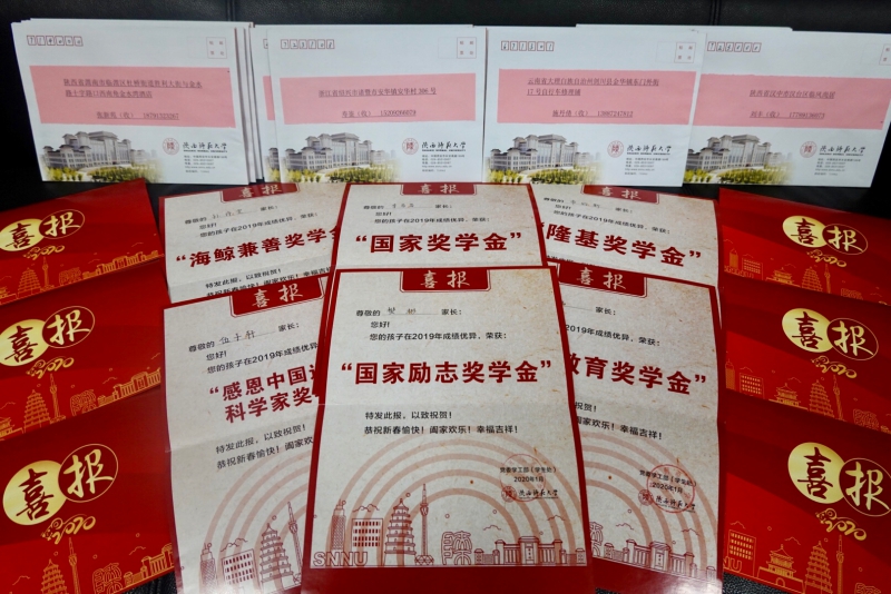 1月9上午,学院领导班子、学工组老师和部分学院教师共同为获奖学生书写喜报。本年度学院获得国家奖学金9人,国家励志奖学金20人,以及海亮奖学金、感恩中国近现代科学家奖学金、文源奖学金、海鲸兼善奖学金、叶圣陶奖学金、隆基卓越教师奖学金、隆基非师范专业奖学金、光正奖学金等奖项共44名同学。各位老师认真书写信息,并经反复核对确认,将填写好的喜报装入信封封好,统一寄送。承载着学校与学院深深祝福和殷切希望的一封封喜报将寄往全国各地获奖学子家中。