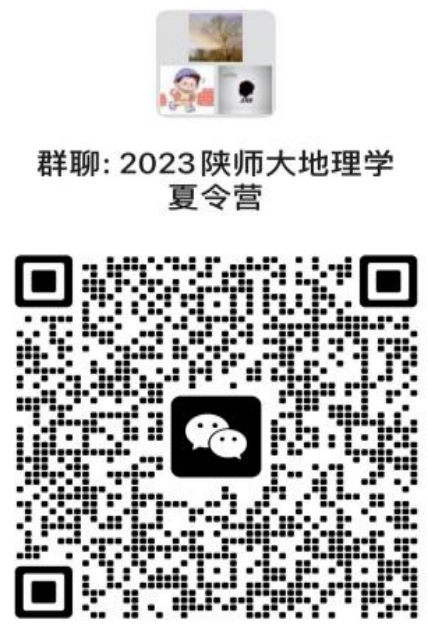 请拟录取同学于2023年7月2日前扫二维码加入微信群“2023陕师大地理学夏令营”,逾期视为放弃资格。